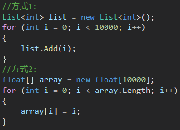 List.Add会动态扩容,触发多次数组重分配和元素复制,增加内存和GC开销;第二种预先分配好固定大小的数组,直接填充,不会扩容,性能更优。”