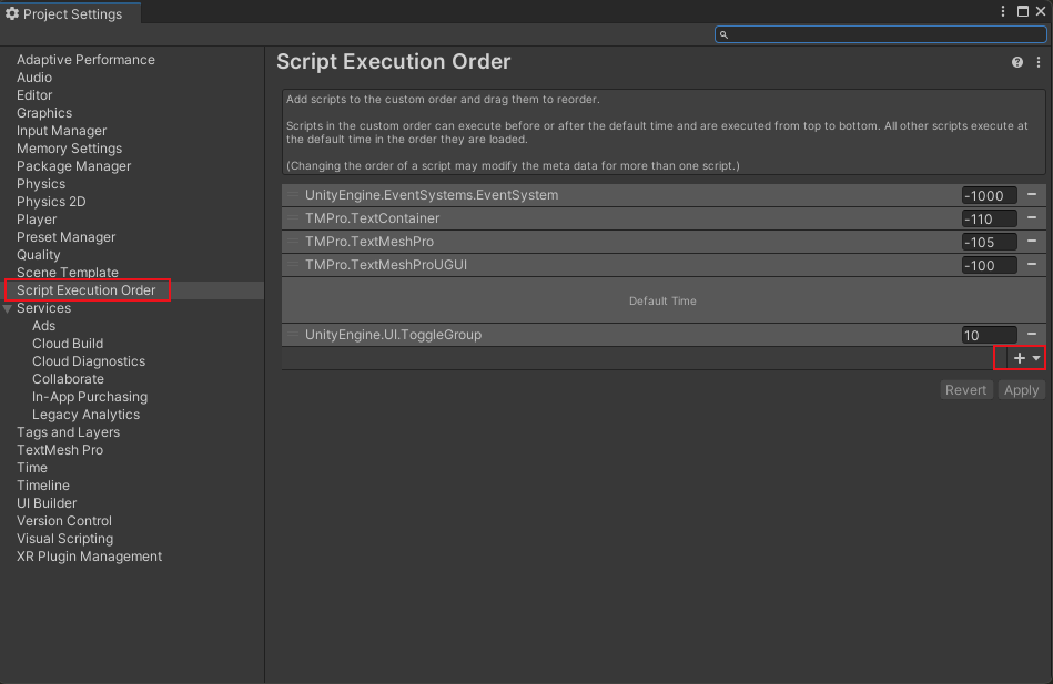 - 打开Project Settings窗口,选择Script Execution Order选项。