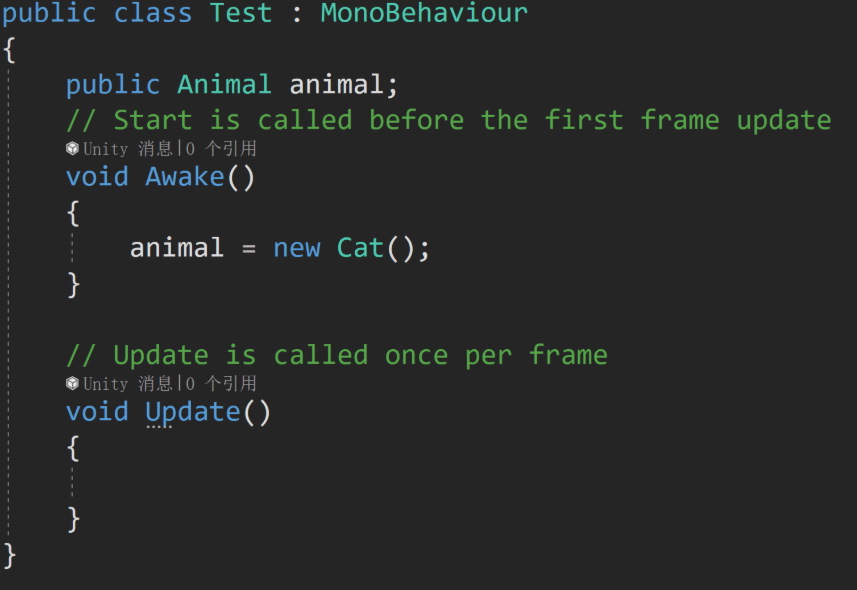 IBehavior,字段声明为public IBehavior behavior;,加上[SerializeReference],就可以拖拽并选择具体实现PatrolBehavior、ChaseBehavior,并直接在 Inspector 配置它们内部参数。