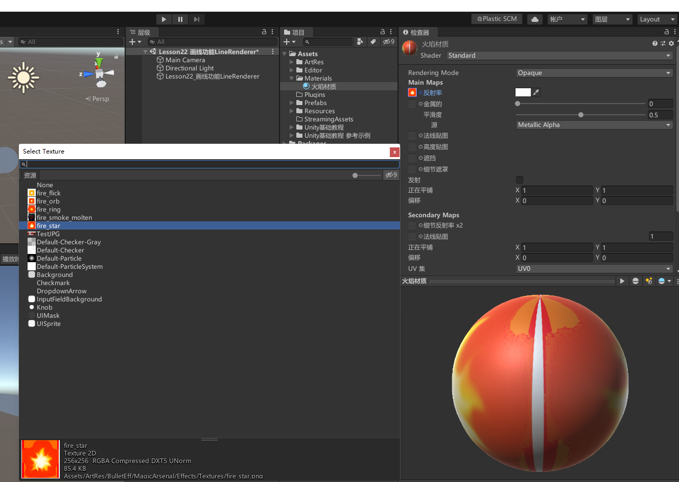 - 我们可以新建一个材质,使用默认shader,关联一张图片,拖拽到划线组件的材质球上。