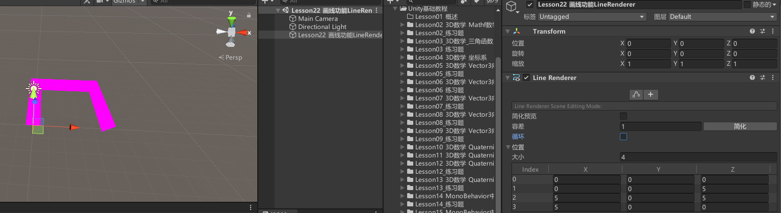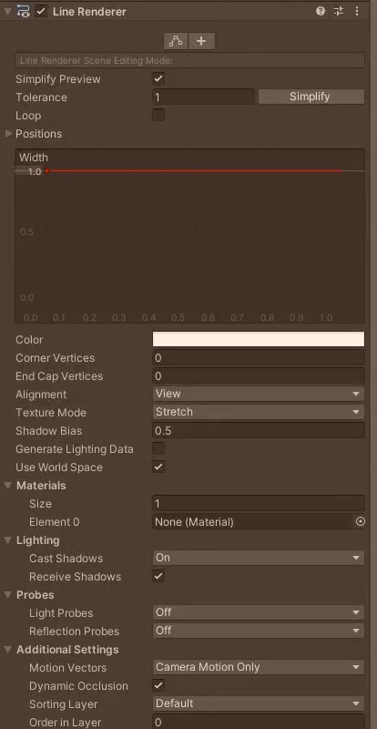 - LineRenderer 是Unity提供的一个用于画线的组件。