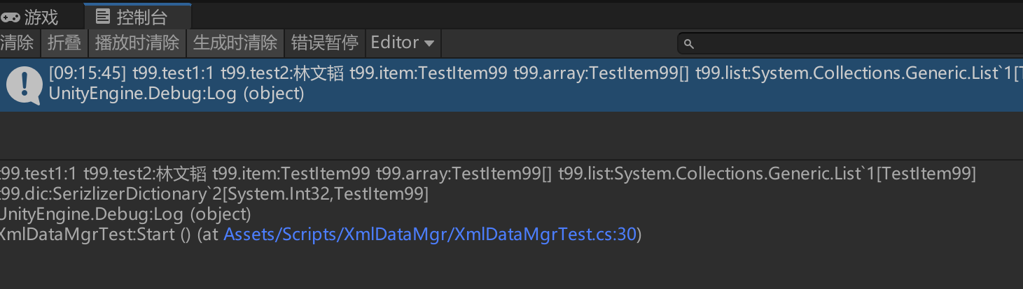 TestClass99 t99 = XmlDataMgr.Instance.LoadData(typeof(TestClass99), "Test99") as TestClass99;