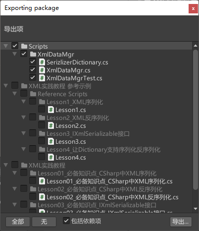 导出Xml管理器,自定义序列化字典看和测试脚本