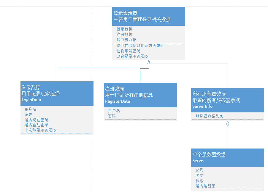 创建登录管理器LoginMgr脚本,设置成单例。包含LoginData变量。构造函数初始化的时候用XML数据管理器来获取。