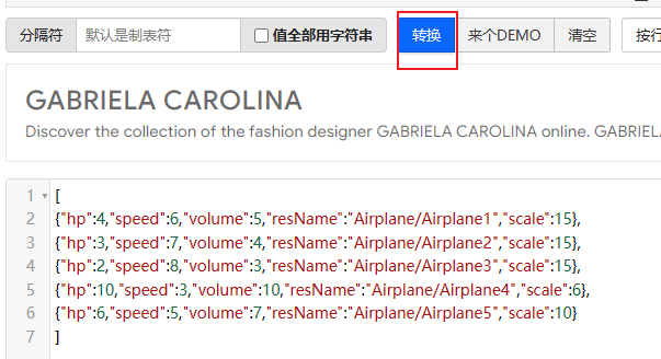 请把Unity入门中的炮台数据转换在Excel表中配置,转换为Json数据,存储到一个Json文件中