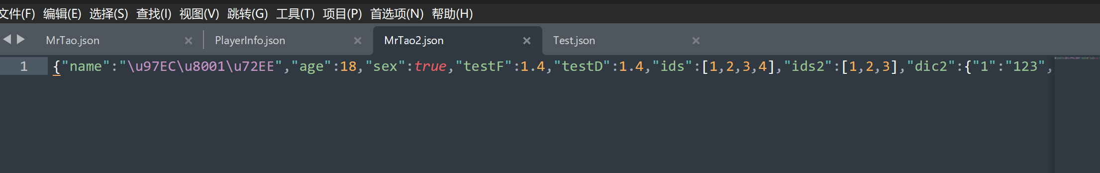 查看序列化后的json文件
