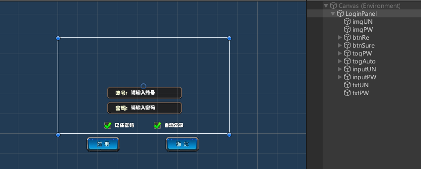 创建注册确定按钮,记住密码自动登录多选框,账号密码输入框和一些底图,调整位置和组件上的参数。