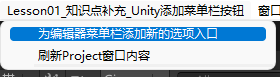 [MenuItem("Lesson01_知识点补充_Unity添加菜单栏按钮/为编辑器菜单栏添加新的选项入口")]