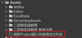 Directory.CreateDirectory(Application.dataPath + "/刷新Project窗口内容测试文件夹");