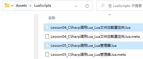 - 实际开发中不会在lua脚本后加.txt后缀,只有测试热更新功能是否正常或最终打包才会,之后会做一个工具,可以一键修改lua脚本后缀.txt,和一键还原后缀为.lua。现在先把文件夹后缀改回.lua