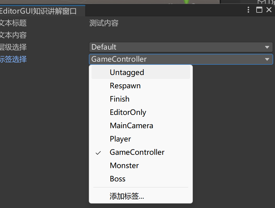 tag = EditorGUILayout.TagField("标签选择", tag);