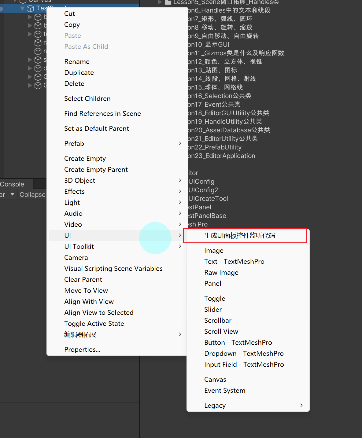 右键选中对象,可以在UI页签中添加新功能