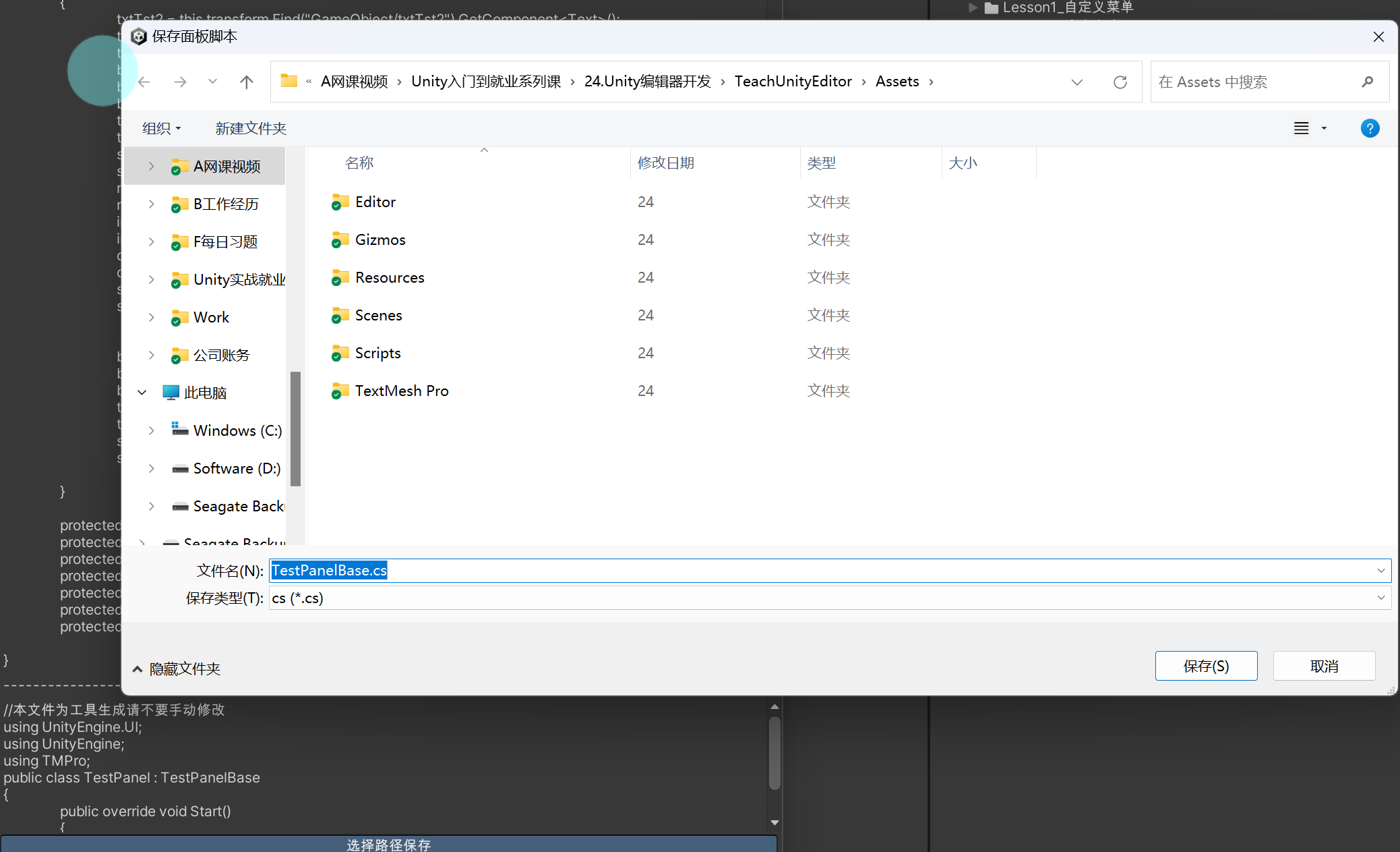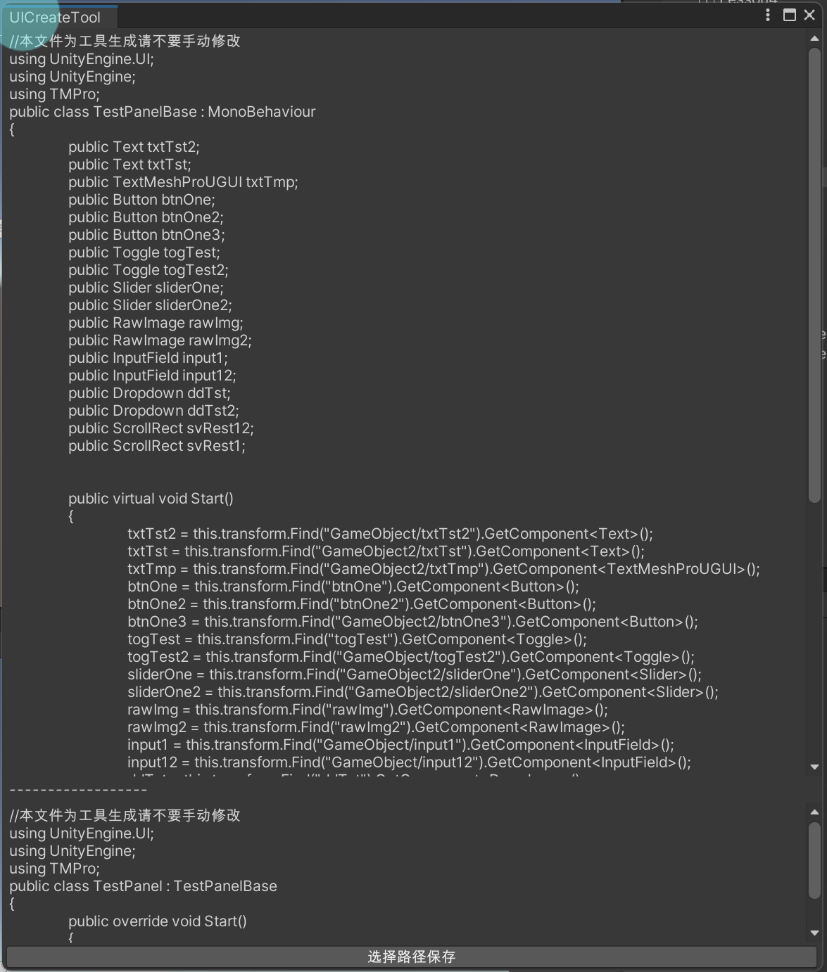 点击保存后,会动态创建两个脚本文件,并且会将脚本添加到选中对象上