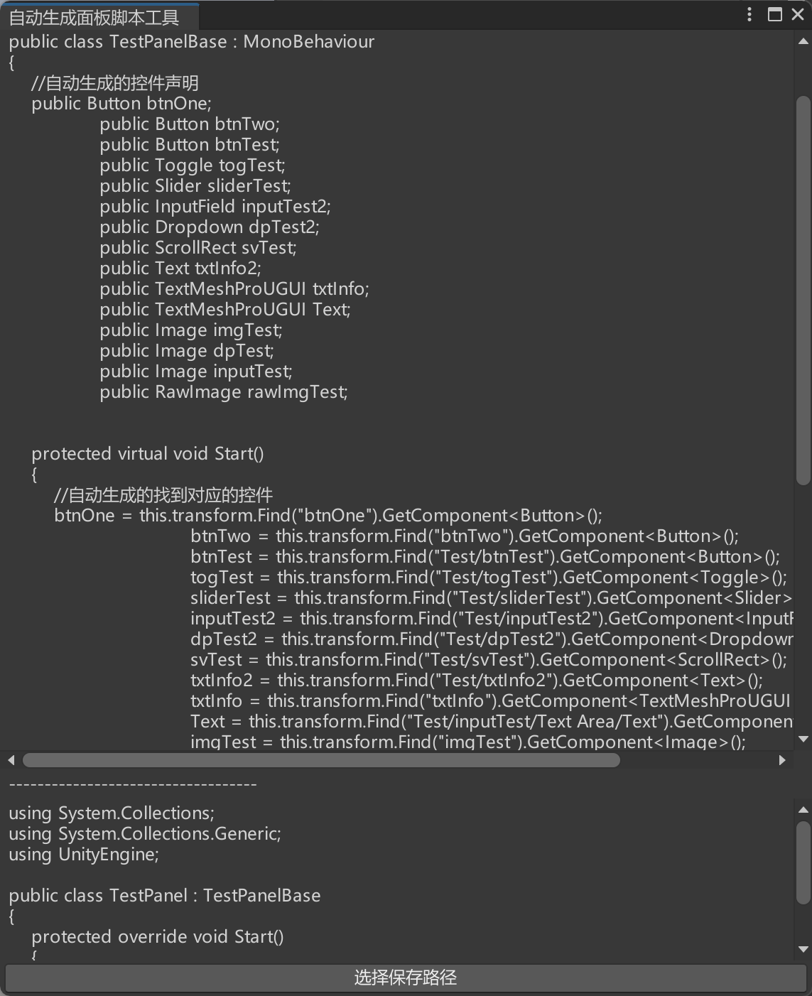 if (GUILayout.Button("选择保存路径"))
