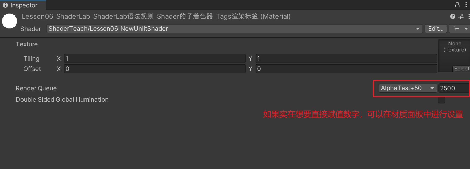 - 注意:自定义队列只能基于预先定义好的各类型进行计算,不能在Shader中直接赋值数字。如果实在想要直接赋值数字,可以在材质面板中进行设置。