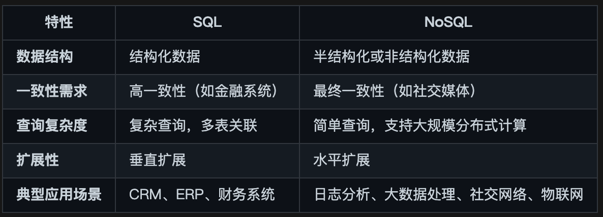 - 数据一致性较弱(除部分 NoSQL 数据库外,如支持事务的 MongoDB)。
