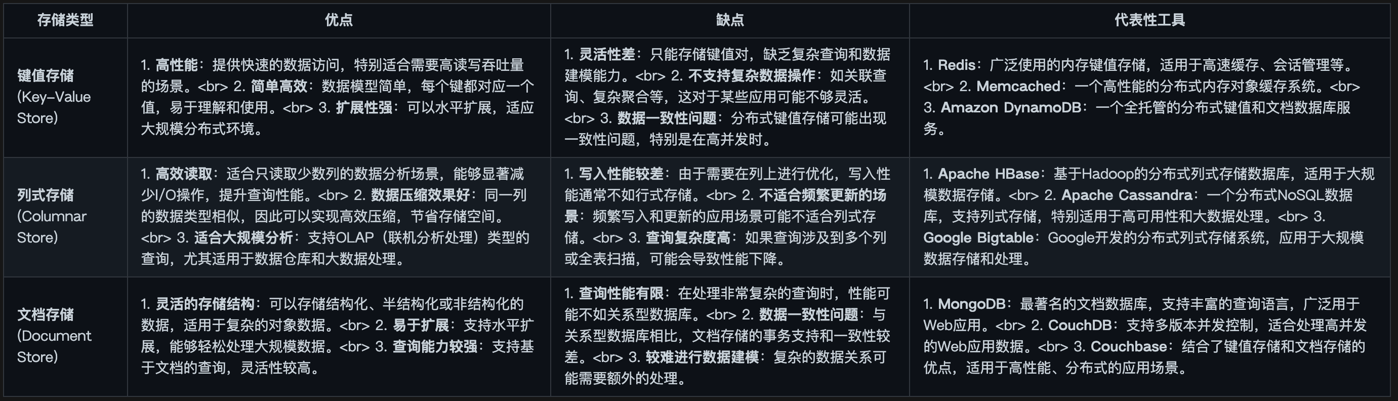 - 写入性能低:列优化导致写入速度通常低于行式存储。