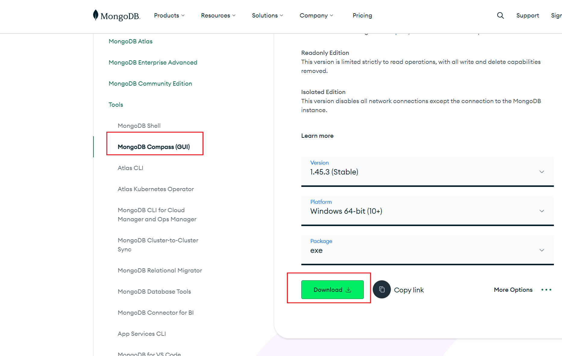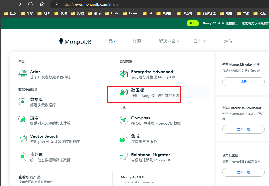 首先,前往 MongoDB 官方网站 下载 MongoDB Shell。这里选择下载 Windows 版本。