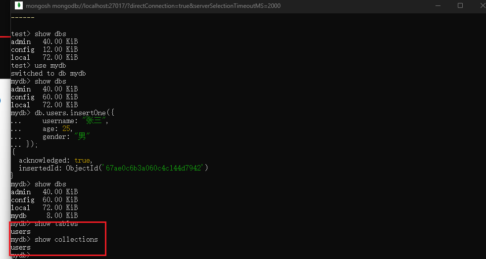 显示当前数据库中的集合(表)