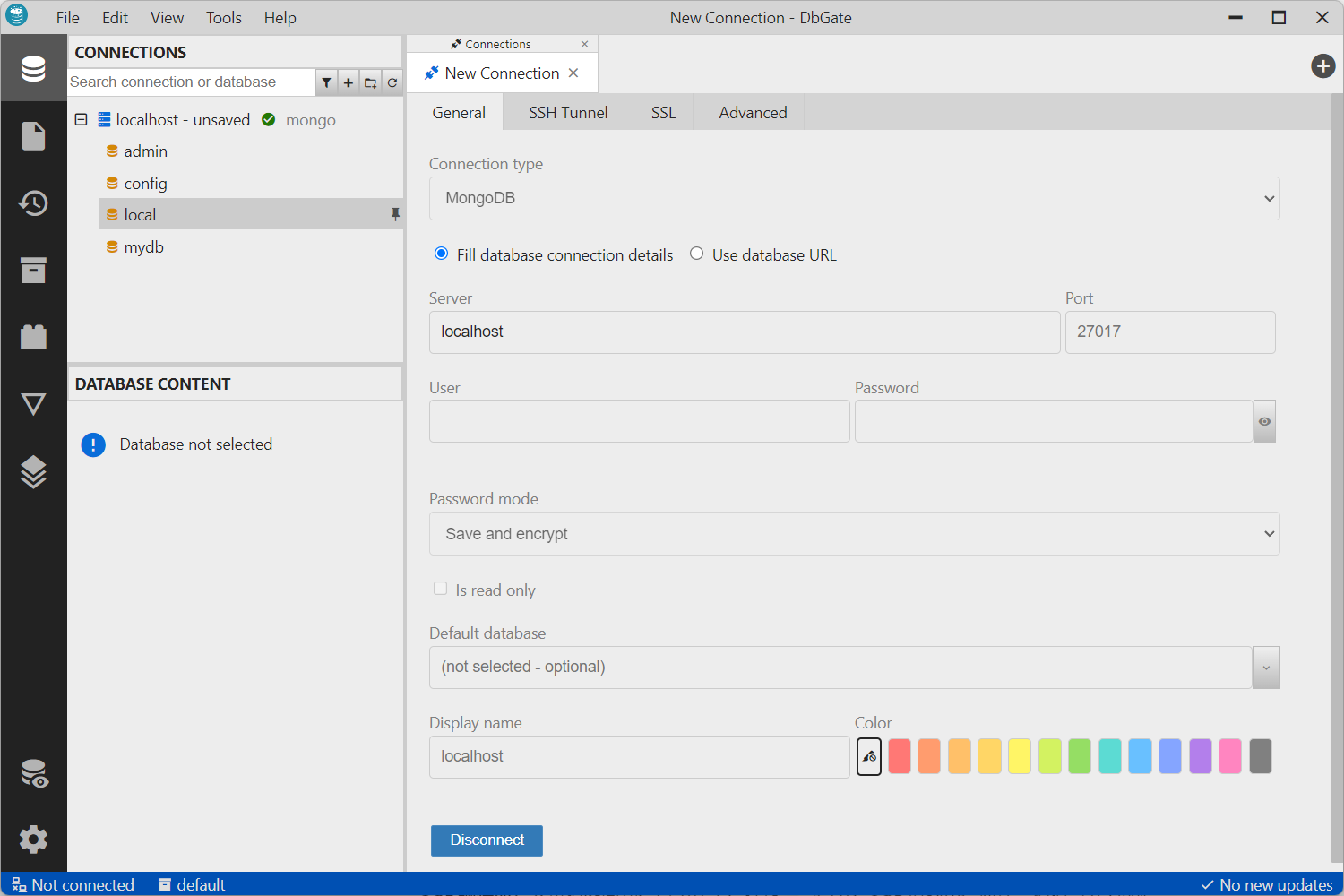 除了官方工具之外,还有很多优秀的第三方管理工具,比如 Robo 3T、Studio 3T 、DbGate等。由于工具种类繁多,具体使用哪种工具可以根据个人喜好选择,这里就不一一赘述了。