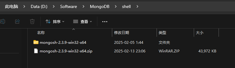 下载完成后,你会得到一个可执行文件。双击启动 mongosh