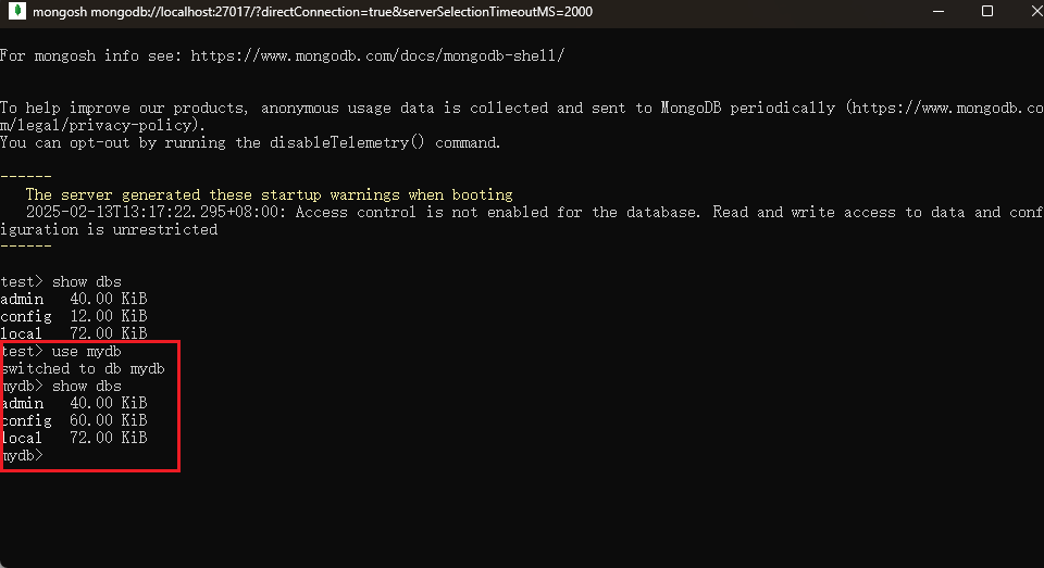 use mydb // 切换到目标数据库
