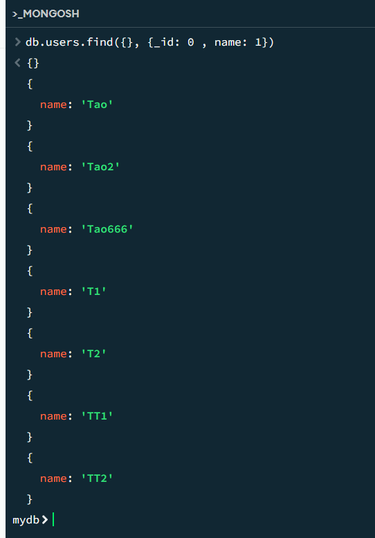 来排除。 - 支持嵌套字段的投影,使用点语法来指定。