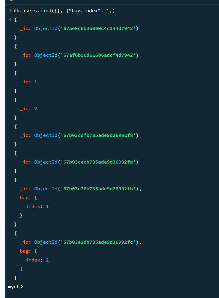 如果文档中有嵌套的子文档,可以通过“点”语法来指定嵌套字段。例如,如果文档中有一个 bag