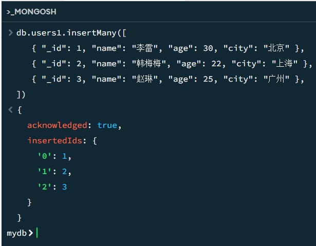 { "_id": 1, "name": "李雷", "age": 30, "city": "北京" },