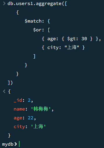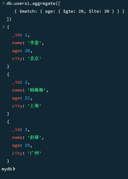 { "_id": 2, "name": "韩梅梅", "age": 22, "city": "上海" },