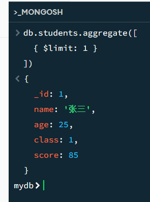 { $limit: 1 } // 返回接下来的 1 条文档