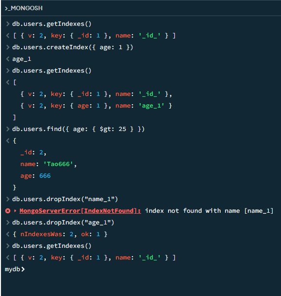 [ { v: 2, key: { _id: 1 }, name: '_id_' } ]