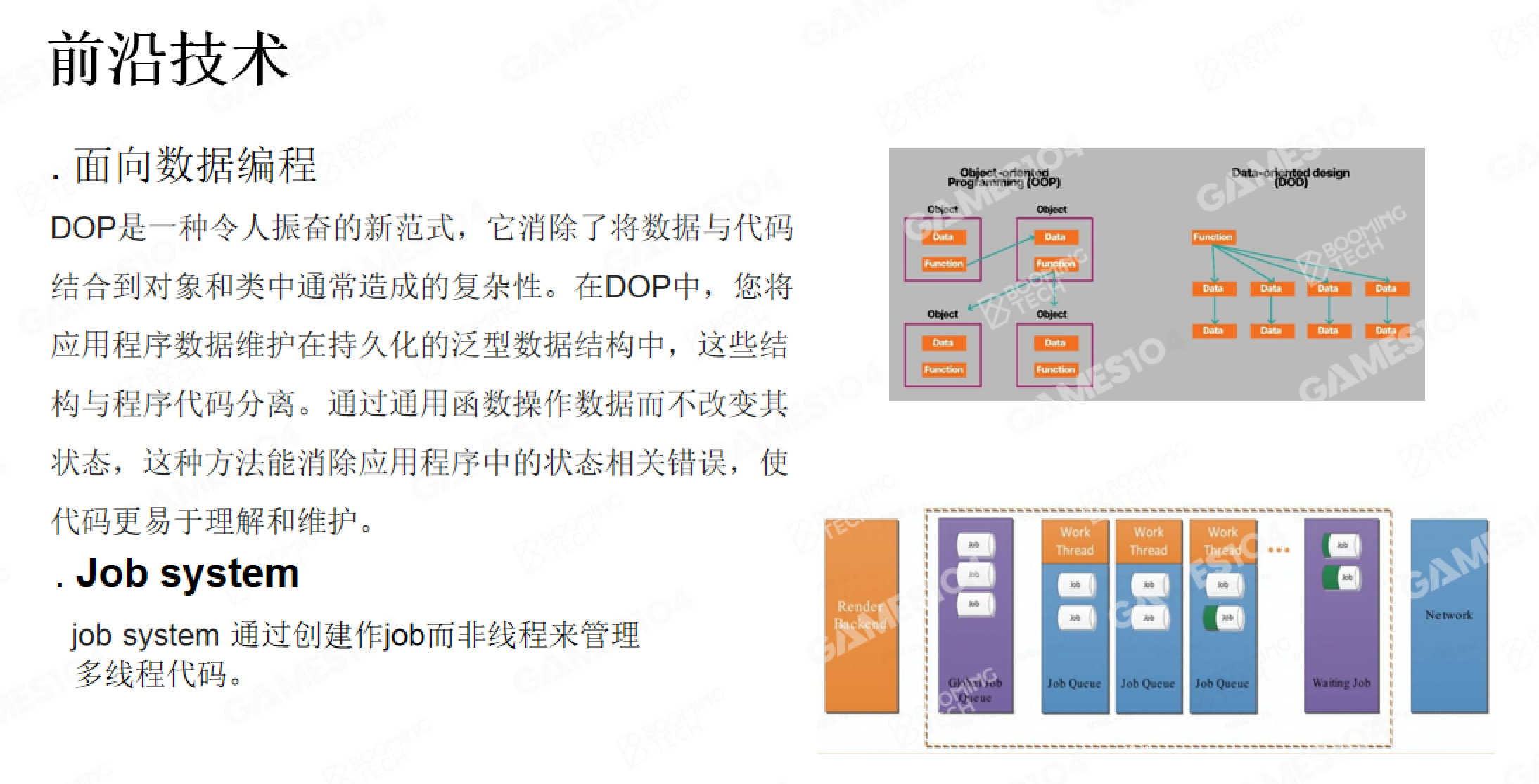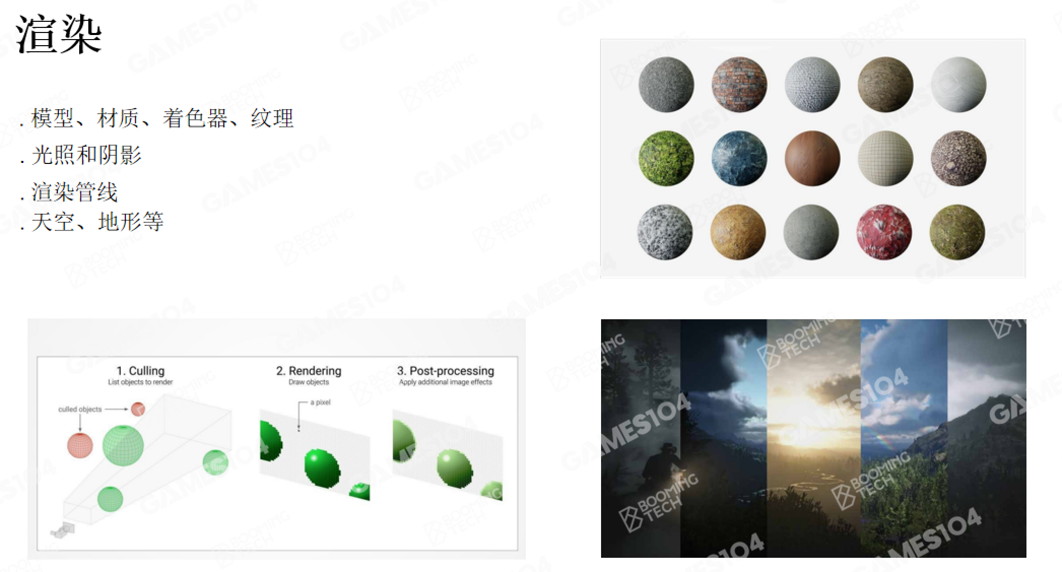 聚焦管线组织逻辑:可编程管线框架、Forward/Deferred渲染取舍、透明物体排序难点、PBR材质/光照整合,以及后处理与可扩展管线设计;不深讲图形学算法,侧重“多元素如何在33ms内高效拼装”。