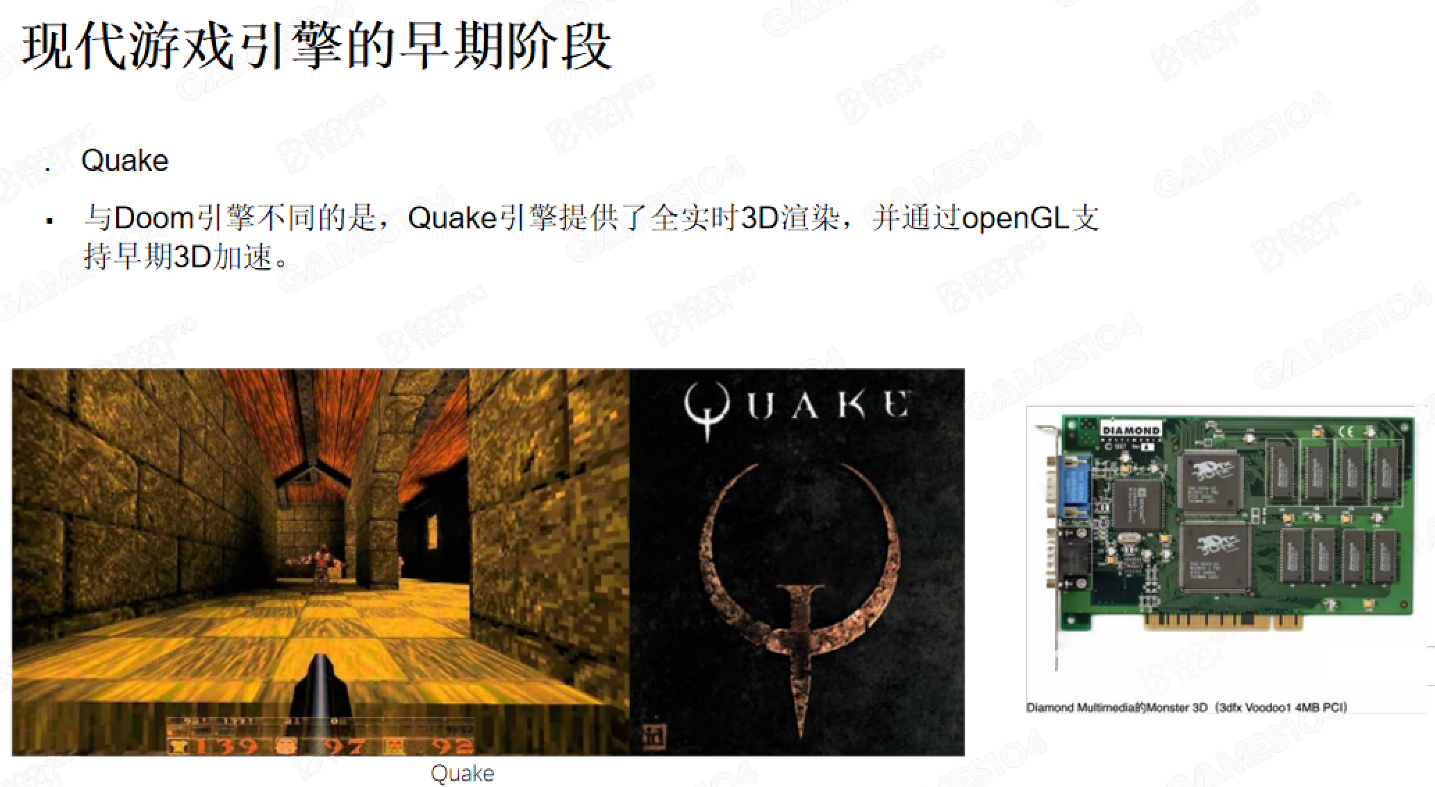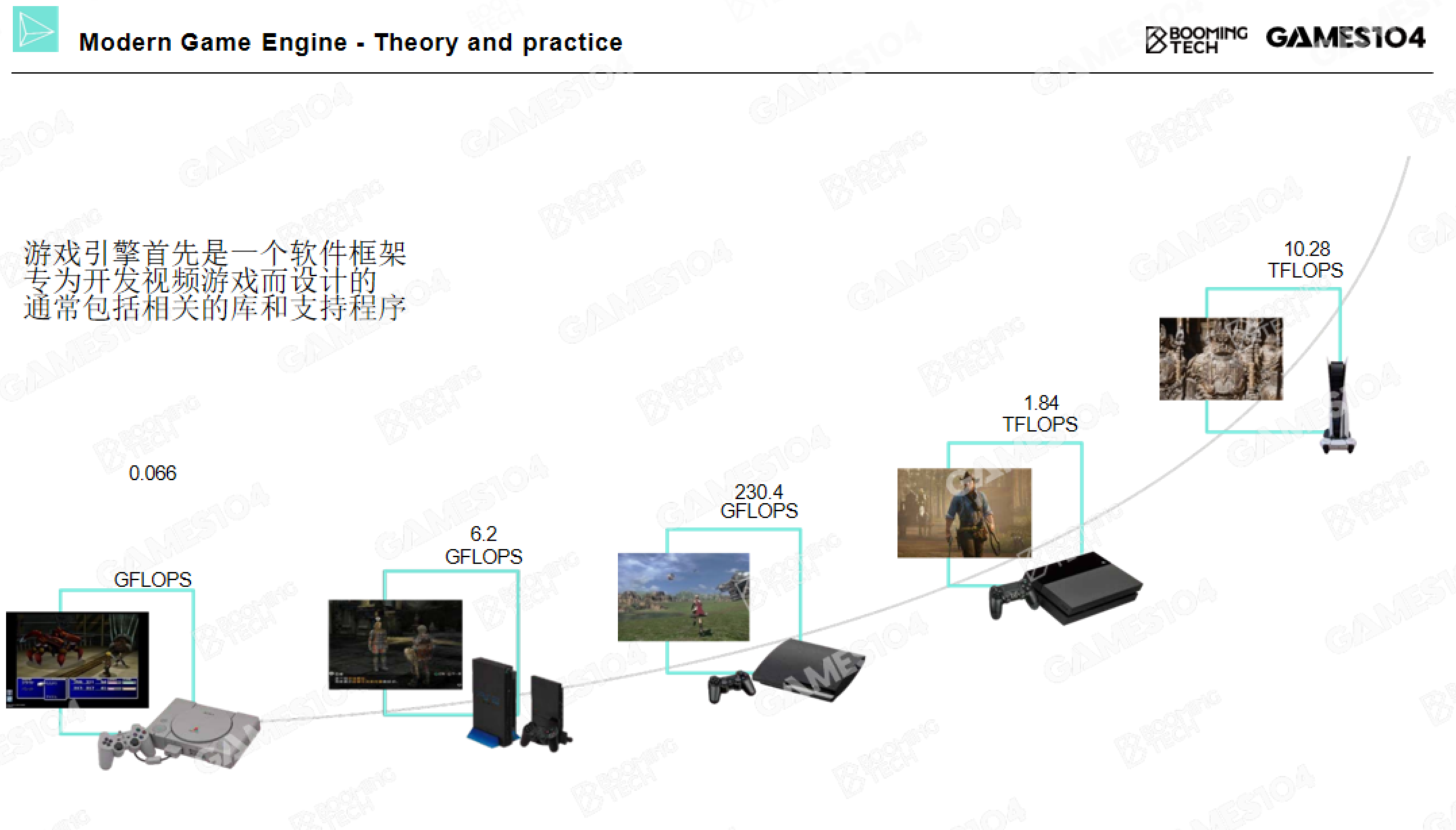 Quake时代与GPU革命:Quake引擎实现了突破性的实时3D渲染技术,并通过支持OpenGL接口接入3D加速功能——这一阶段显卡(GPU)应运而生,成为引擎技术跃升的关键硬件基础。游戏引擎的发展始终与硬件迭代深度绑定:早期主机算力仅约0.06GFlops,而PS5的运算能力已达10TFlops,算力增长超16万倍,直接推动游戏画面精度、物理模拟复杂度与引擎功能覆盖范围的爆发式提升。