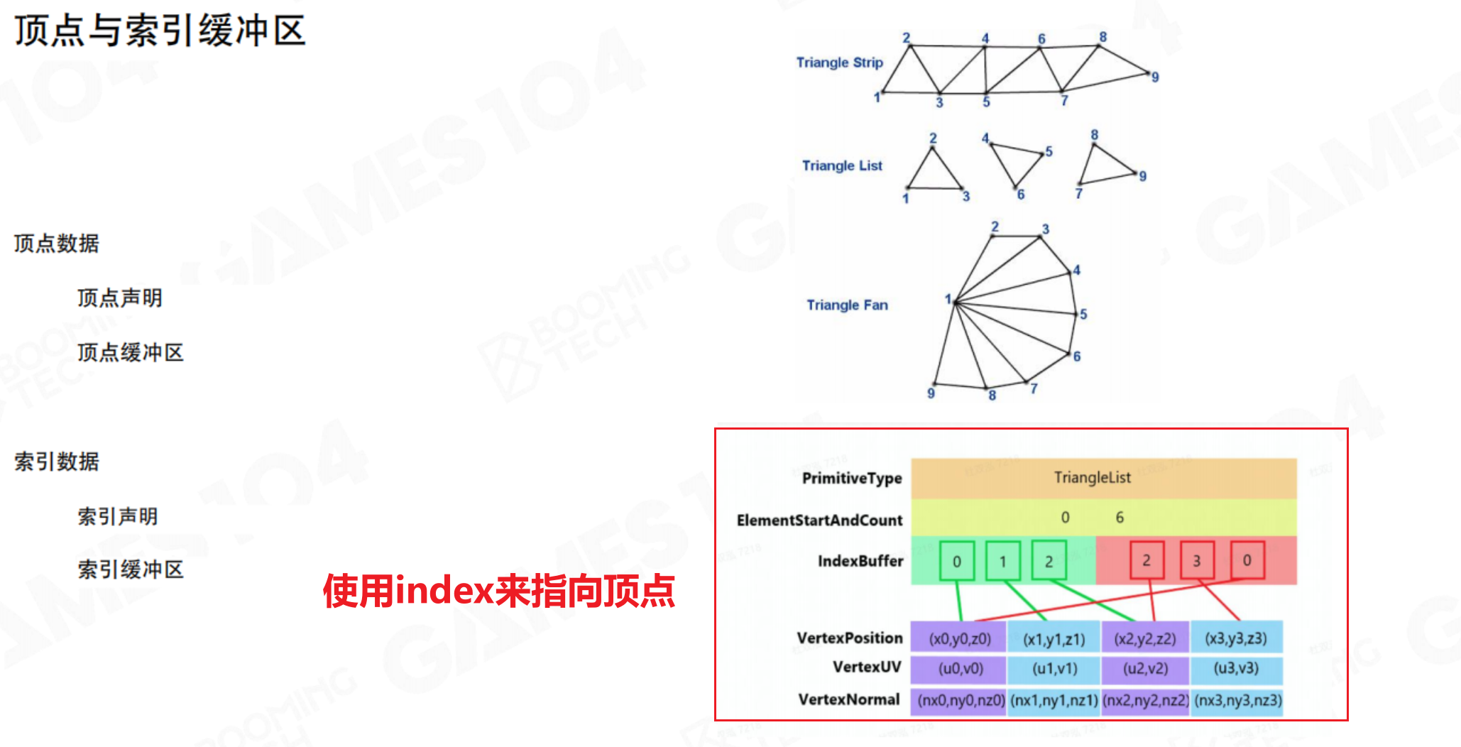 - 三角形数据(Triangle Data):定义了如何将顶点连接成三角面片。