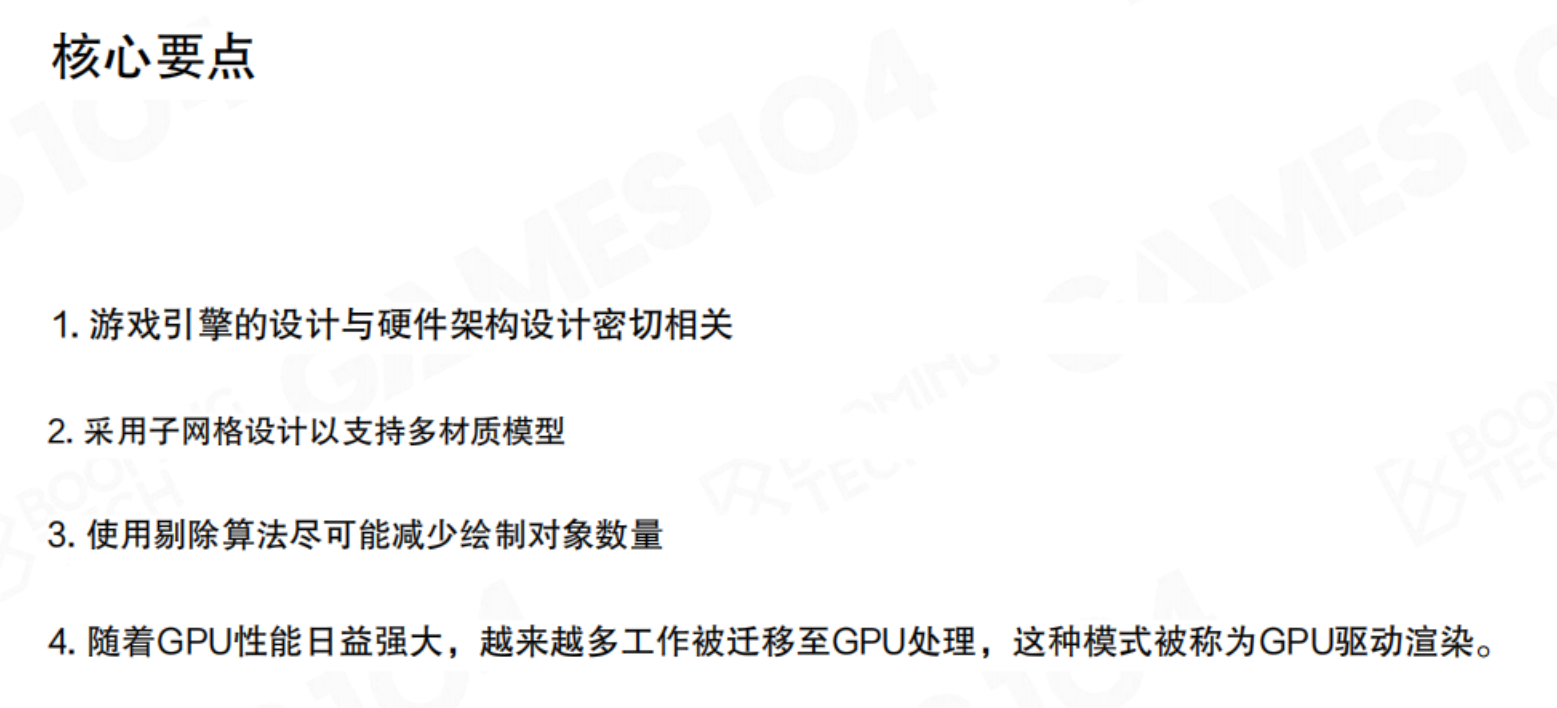 - 游戏引擎的设计与硬件架构设计密切相关要点