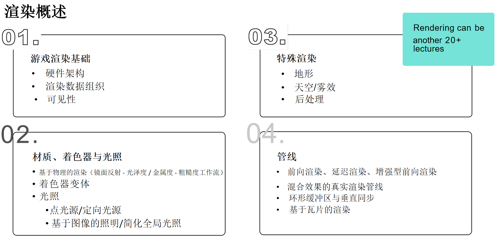 渲染是一个极其庞大的主题,细讲可以讲的非常细。暂时先聚焦以上四块内容