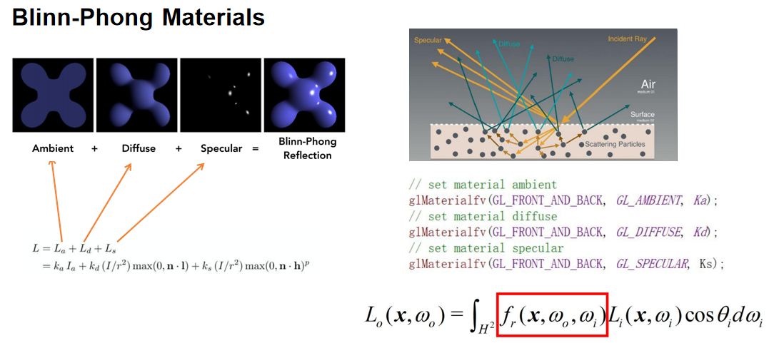 Blinn-Phong 模型将材质反射分解为三个部分: