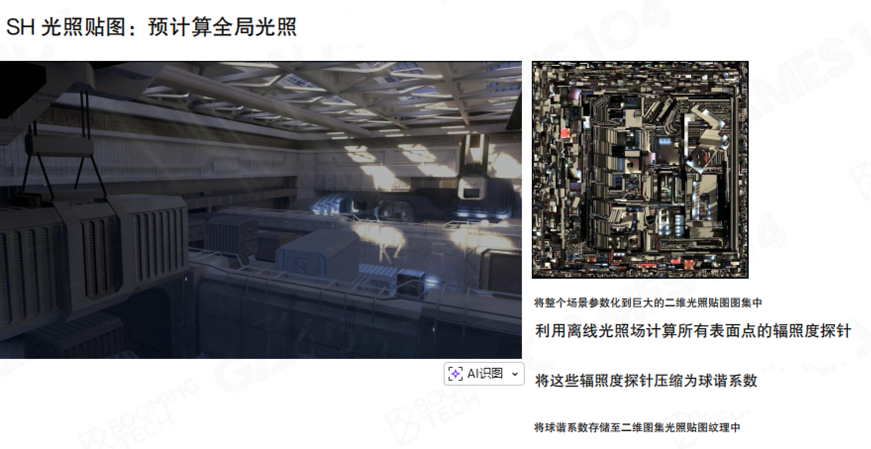 - Voxel-Based GI(SVOGI/VXGI):基于体素的全局光照,将场景体素化后计算间接光照