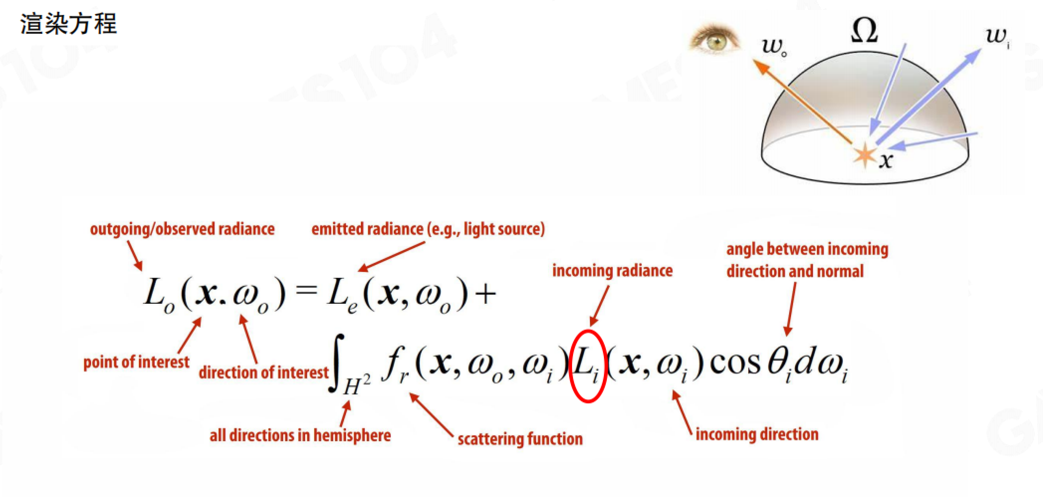 渲染方程以一种简洁而完备的数学形式,定义了光在场景中传播的物理规律。