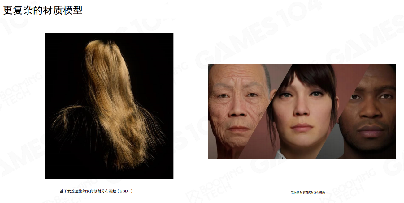 随着渲染技术的发展,人们对材质真实感的要求越来越高。传统的BRDF模型已经无法满足头发、皮肤等复杂材质的渲染需求,更复杂的材质模型应运而生。