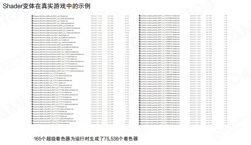 在实际游戏中,Uber Shader系统会产生大量的shader变体。例如,在一个真实的游戏项目中,165个超级着色器在运行时生成了75,536个独立的shader。
