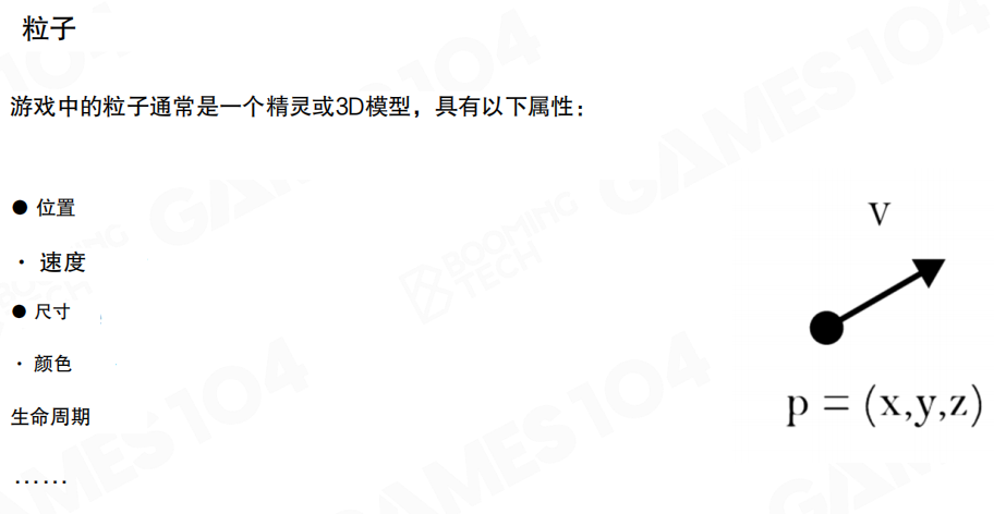 粒子系统的基础是粒子(Particle)。粒子是空间中的一个小点或小面片,具有基本的物理属性。