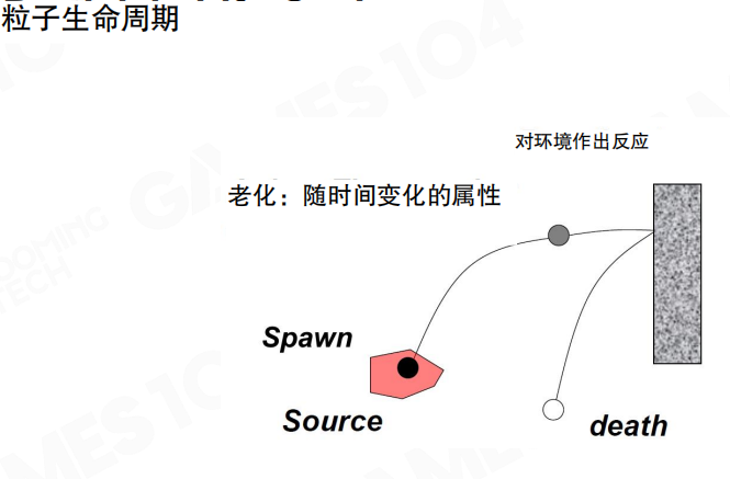 每个粒子都有自己的生命周期(Life Cycle),从生成到死亡,整个过程包括几个阶段。