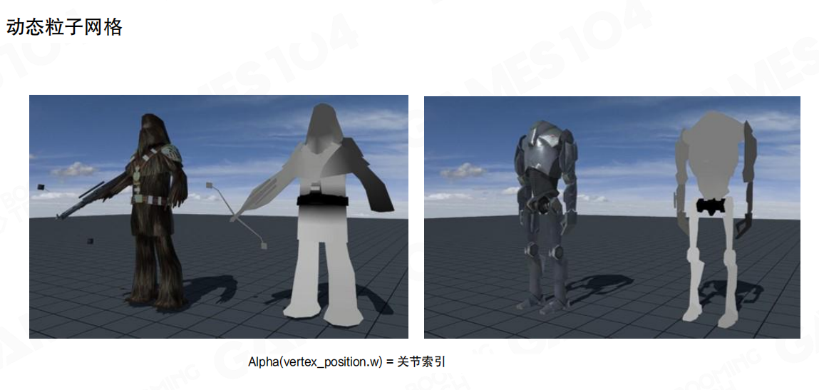 - 基于网格生成(Grid-based Generation):可以在Mesh上采样,例如在角色身上随机采样点来生成粒子,能够实现丰富的视觉效果