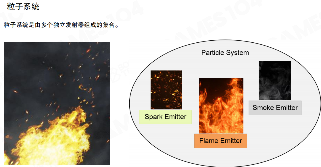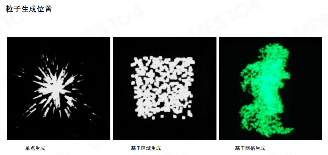 粒子系统可以根据需求选择不同的生成策略,发射器可以定义不同的生成位置。