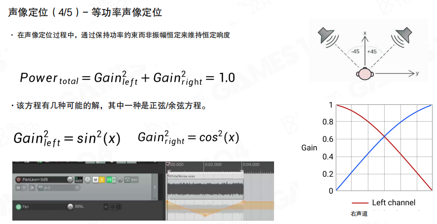 使用三角函数可以保证总功率恒定为1,从而获得更真实的声像定位效果。