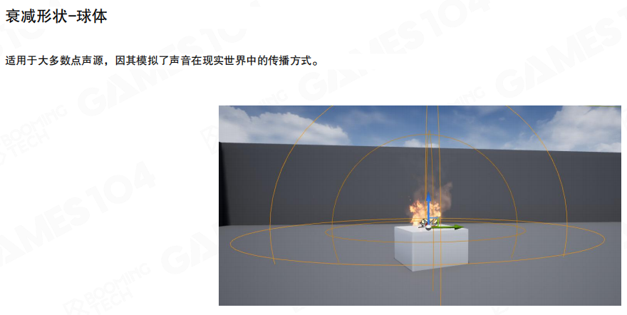 游戏引擎提供了多种衰减形状,以适应不同的声源类型。