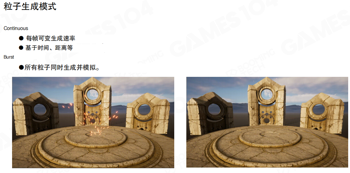 - 到某个时间点突然爆发,一次性生成大量粒子