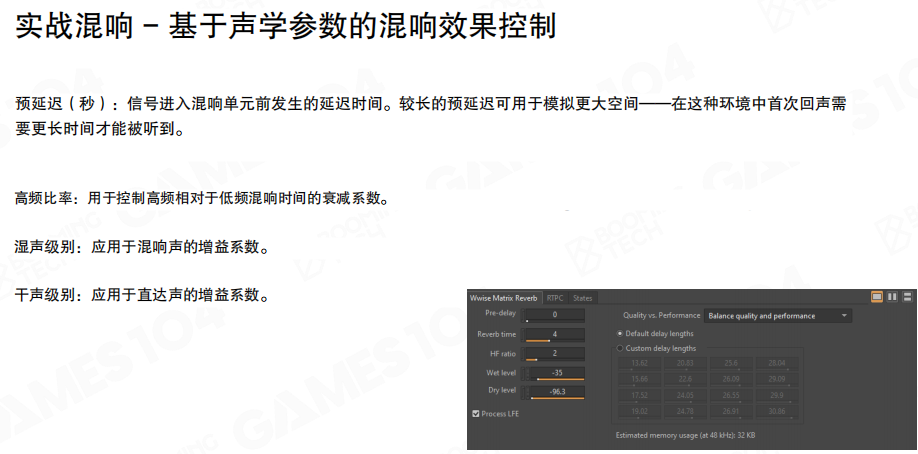 - 高频比率(HF ratio):用于控制高频相对于低频混响时间的衰减系数